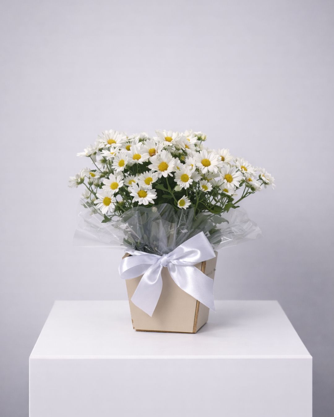 O Brisa Delicada é composto por mini margaridas brancas, que simbolizam simplicidade e carinho. A composição em caixa com laço branco reforça a elegância minimalista, tornando este arranjo uma escolha perfeita para gestos delicados e cheios de significado.