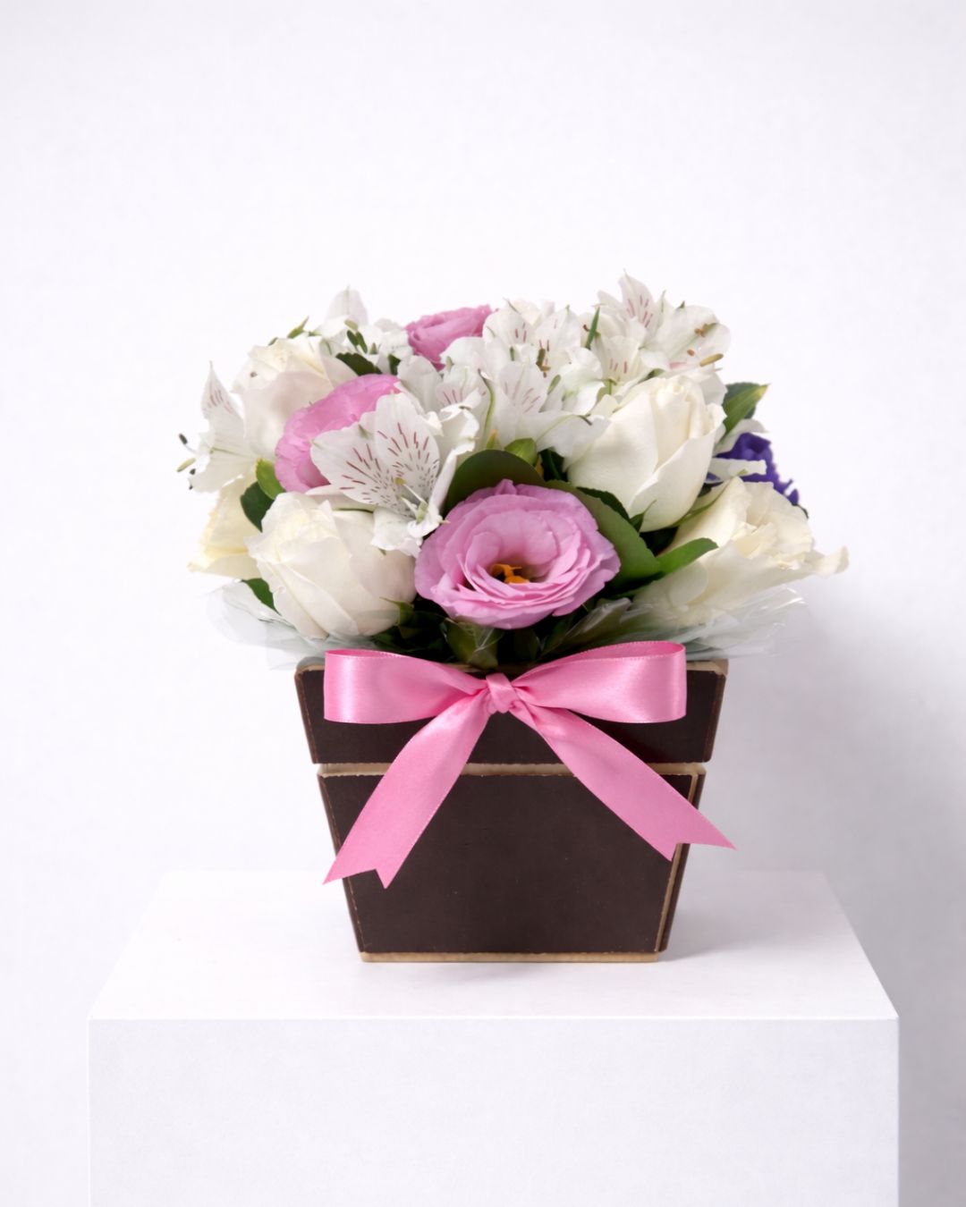 Um arranjo que transmite leveza, cuidado e delicadeza. A combinação das flores brancas com toques suaves de rosa cria uma composição serena, que lembra abraços tranquilos e gestos cheios de afeto. Ideal para presentear em momentos de carinho, gratidão ou simplesmente para dizer “estou aqui”.