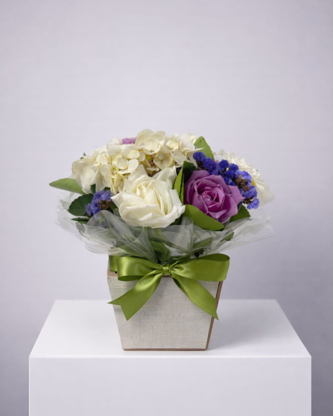 A tonalidade das flores, o estágio de abertura e alguns elementos decorativos podem variar conforme disponibilidade, preservando sempre o padrão de qualidade e sofisticação.