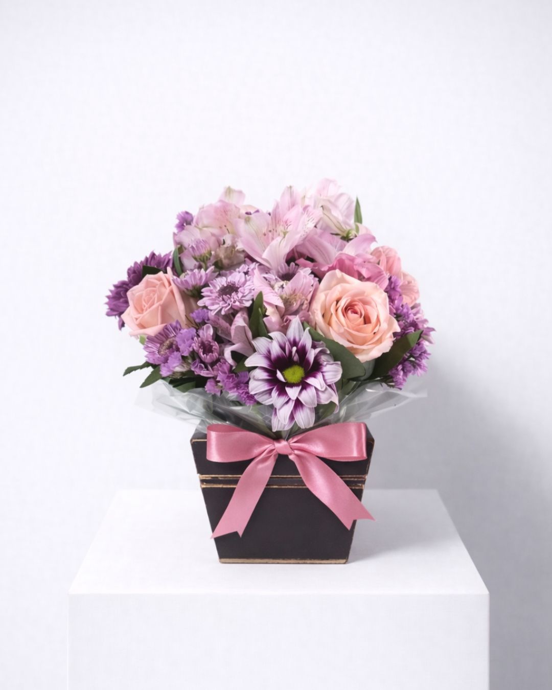 Arranjo floral em tons suaves e harmônicos, criado para transmitir tranquilidade e carinho. A mistura de flores em cores delicadas traz leveza ao ambiente e transforma o momento em algo acolhedor, simples e bonito — daqueles que dizem muito sem precisar explicar.