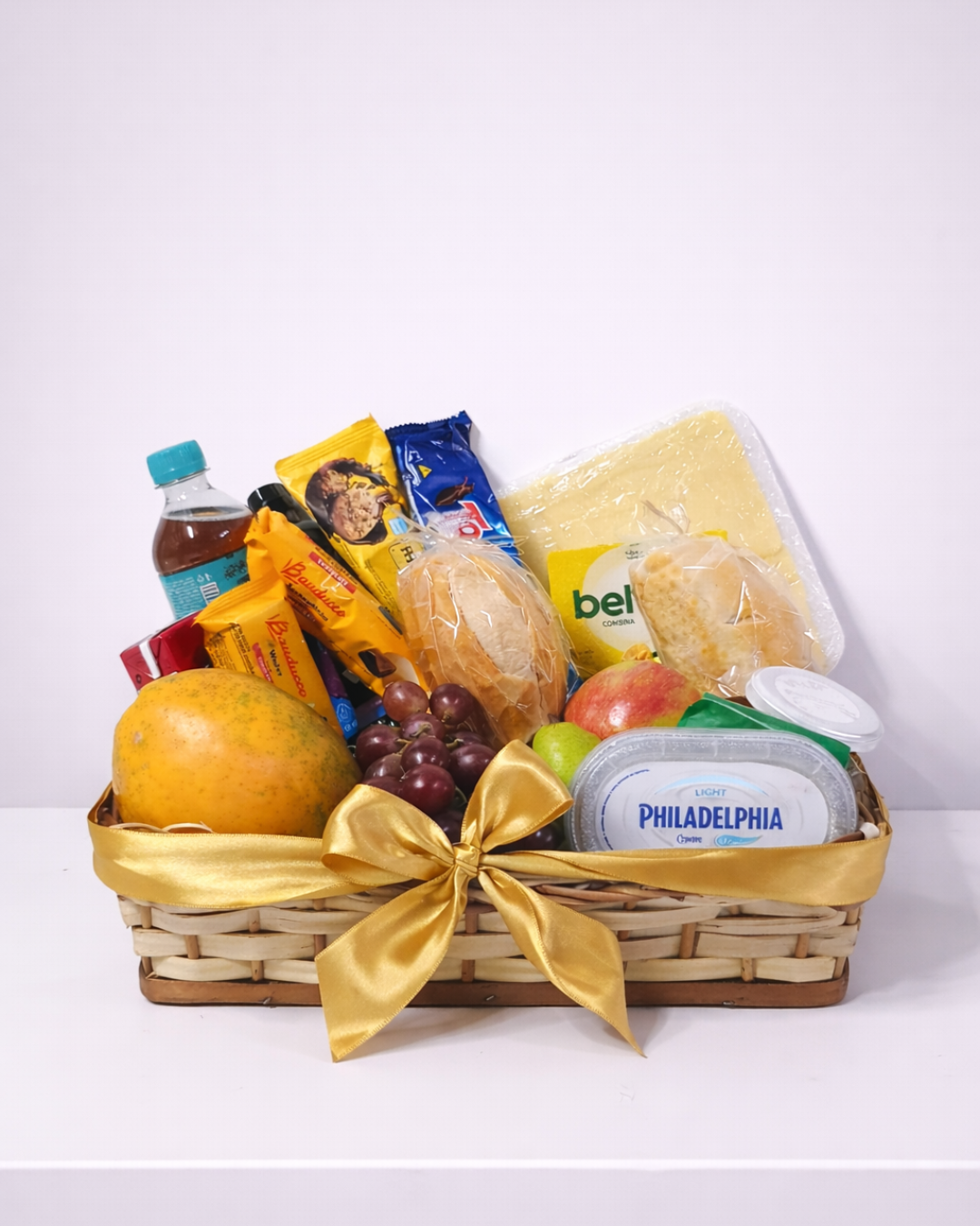 A Cesta Premium Equilíbrio une frutas frescas, pães macios, frios selecionados e marcas reconhecidas para um café da manhã completo e elegante.