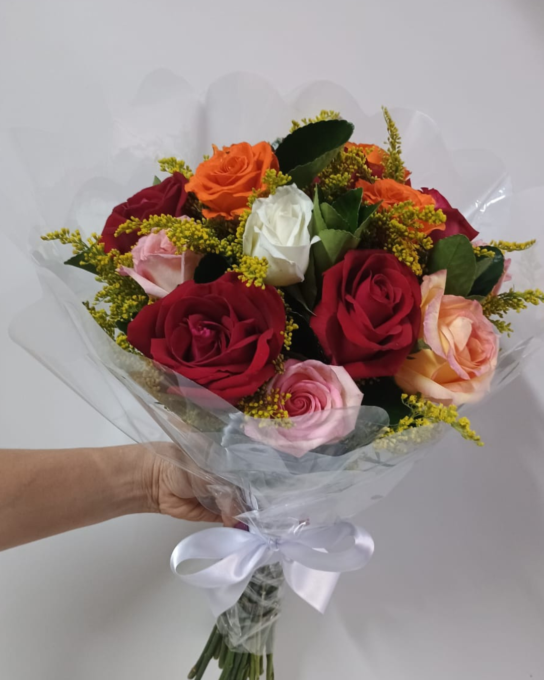 Nossas flores são naturais, por esse motivo, o modelo poderá ser diferente da foto. Pois as vezes não encontraremos as flores no mesmo tom e tamanhos.
