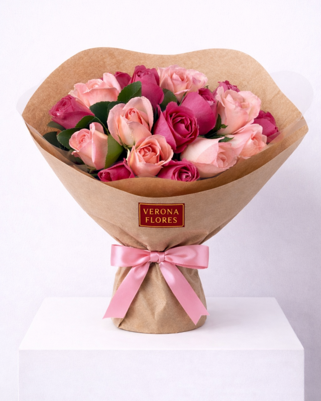 O Doce Contraste combina rosas em tons suaves e vibrantes, criando uma composição envolvente, delicada e ao mesmo tempo marcante. A mistura entre o rosa claro e o pink intenso traz profundidade ao arranjo, representando carinho, paixão e elegância em um único presente.