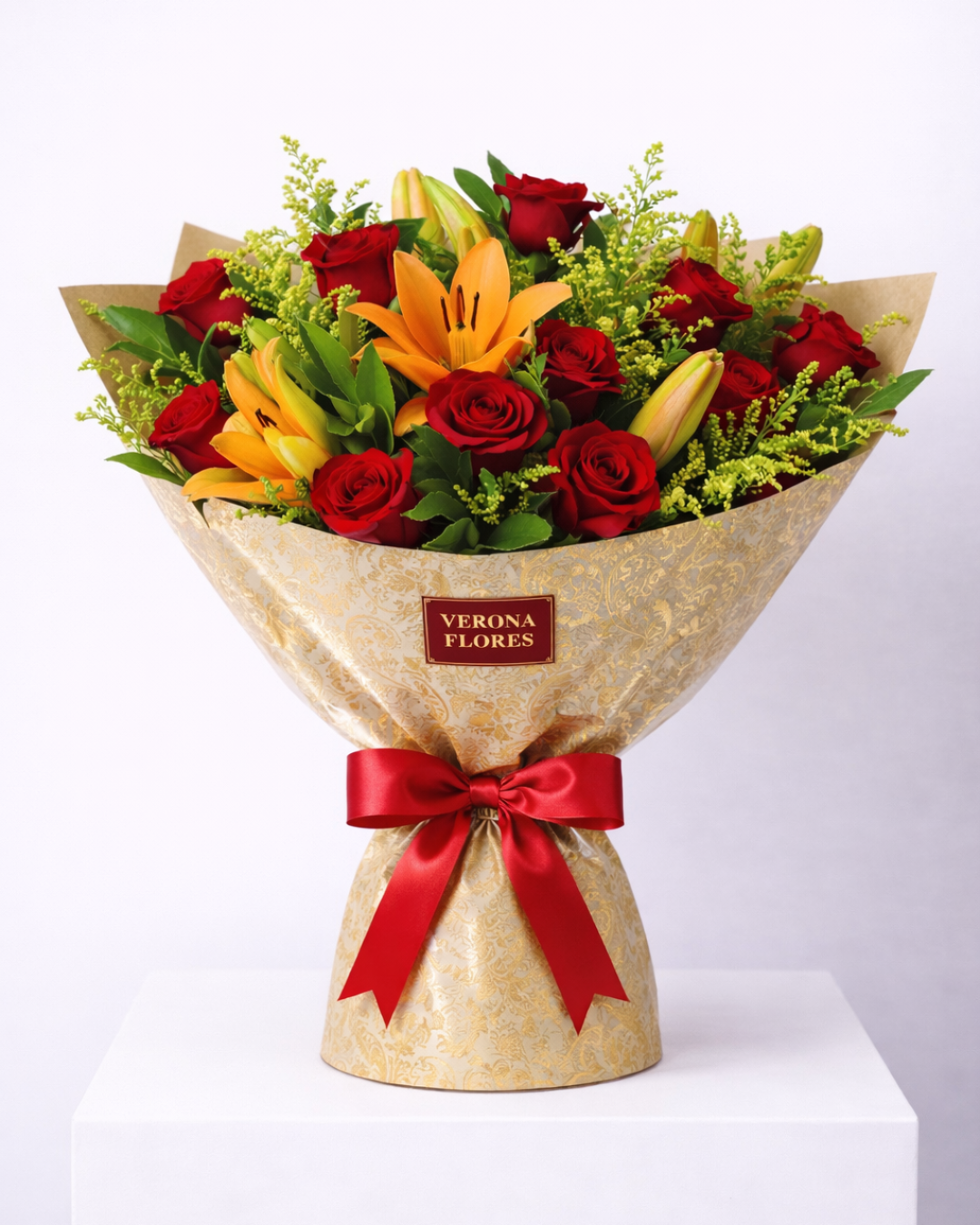 O Elegância Intensa combina a força das rosas vermelhas com a beleza imponente dos lírios em tons quentes, criando uma composição rica, envolvente e extremamente elegante. É um presente pensado para impressionar e transmitir sentimentos profundos com estilo.