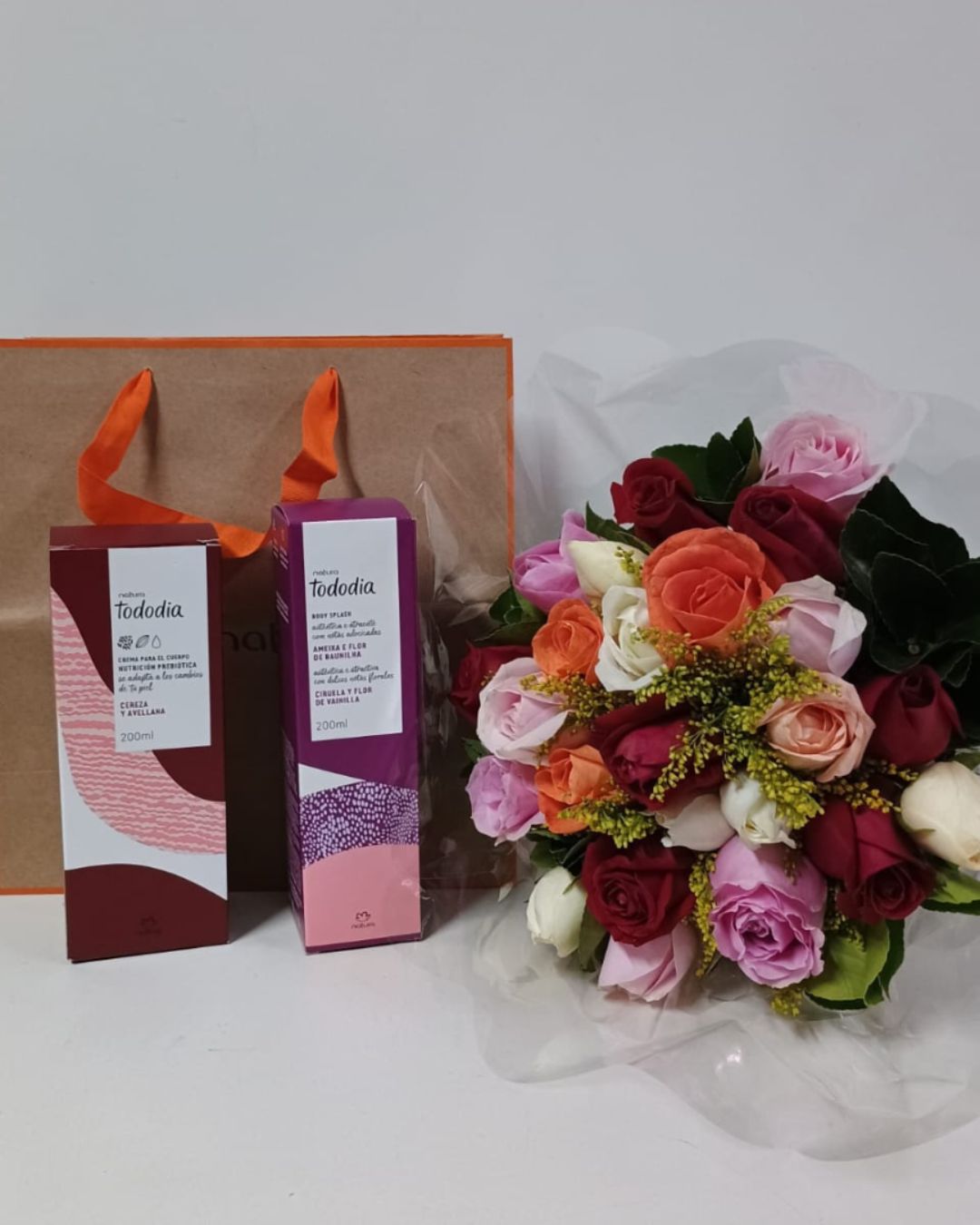 Um presente delicado e cheio de charme, que combina a beleza das rosas coloridas com o cuidado e a fragrância envolvente da linha Natura Tododia. Ideal para demonstrar carinho, celebrar momentos especiais ou transformar o dia de alguém em uma experiência ainda mais doce e acolhedora.