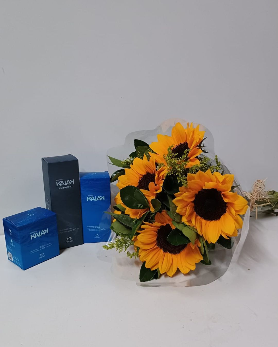 Um presente vibrante e cheio de personalidade, que une a força e alegria dos girassóis com a fragrância marcante e refrescante da linha Natura Kaiak Extremo. Ideal para quem transmite intensidade, confiança e atitude.