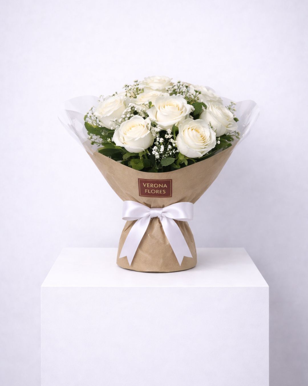 O Pureza Clássica é um buquê que expressa elegância em sua forma mais pura. Com uma composição mais volumosa de rosas brancas cuidadosamente selecionadas, ele transmite paz, carinho e sofisticação, sendo perfeito para presentear com classe e significado.