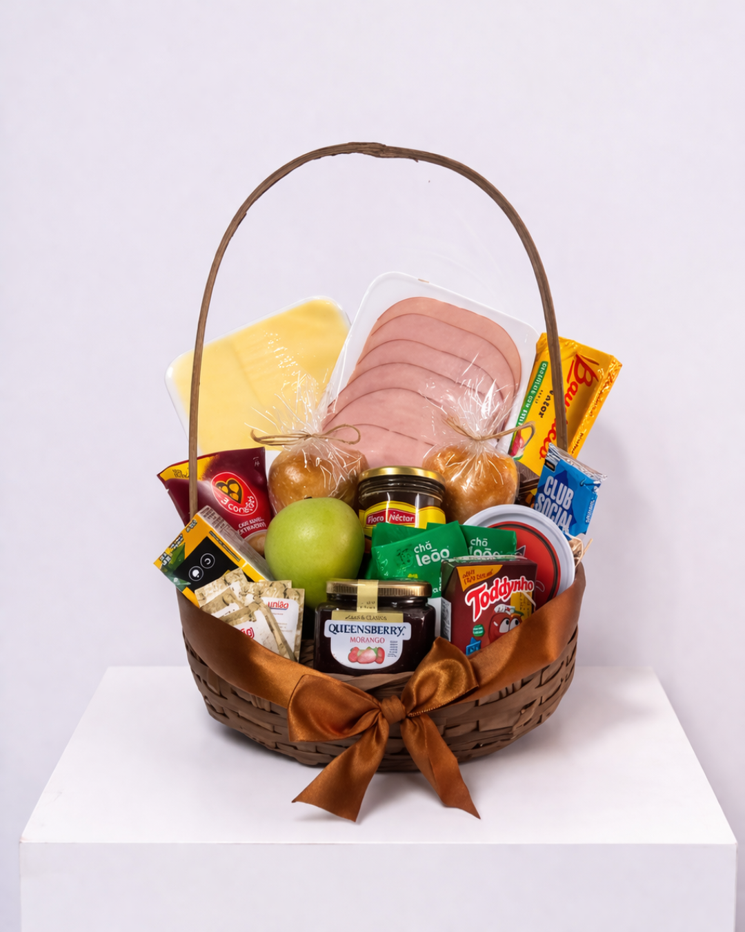 Uma cesta pensada para transformar o início do dia em um momento de cuidado, sabor e afeto. Combina itens clássicos de café da manhã com uma apresentação elegante, ideal para surpreender quem você ama logo nas primeiras horas do dia.