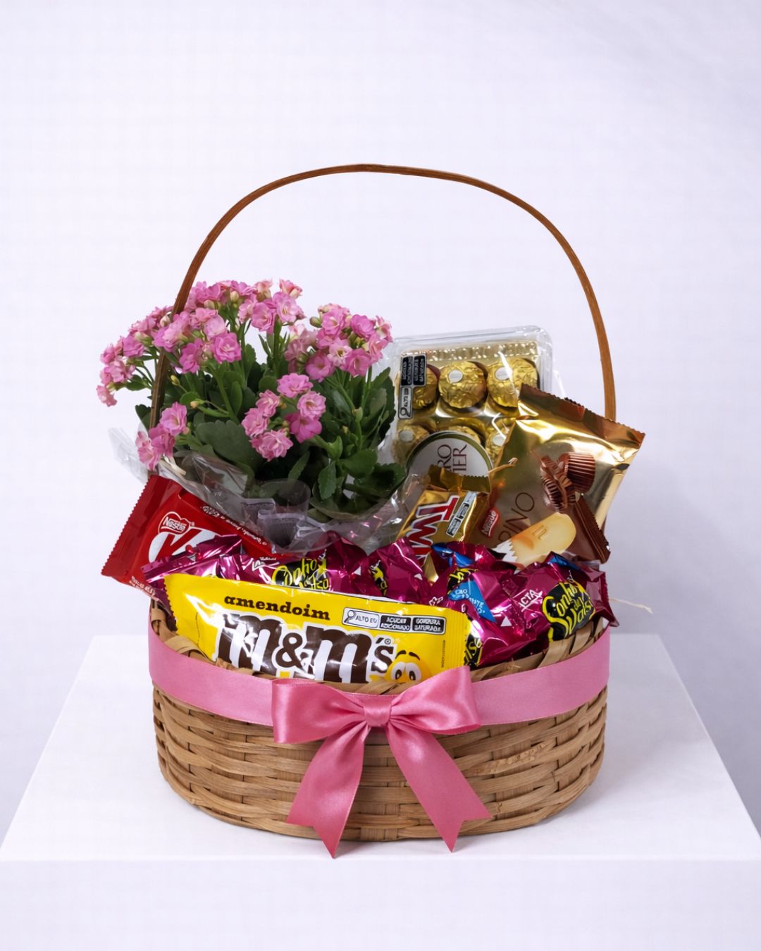 Uma combinação irresistível de chocolates variados com uma delicada planta ornamental, criando um presente equilibrado entre sabor e beleza.
