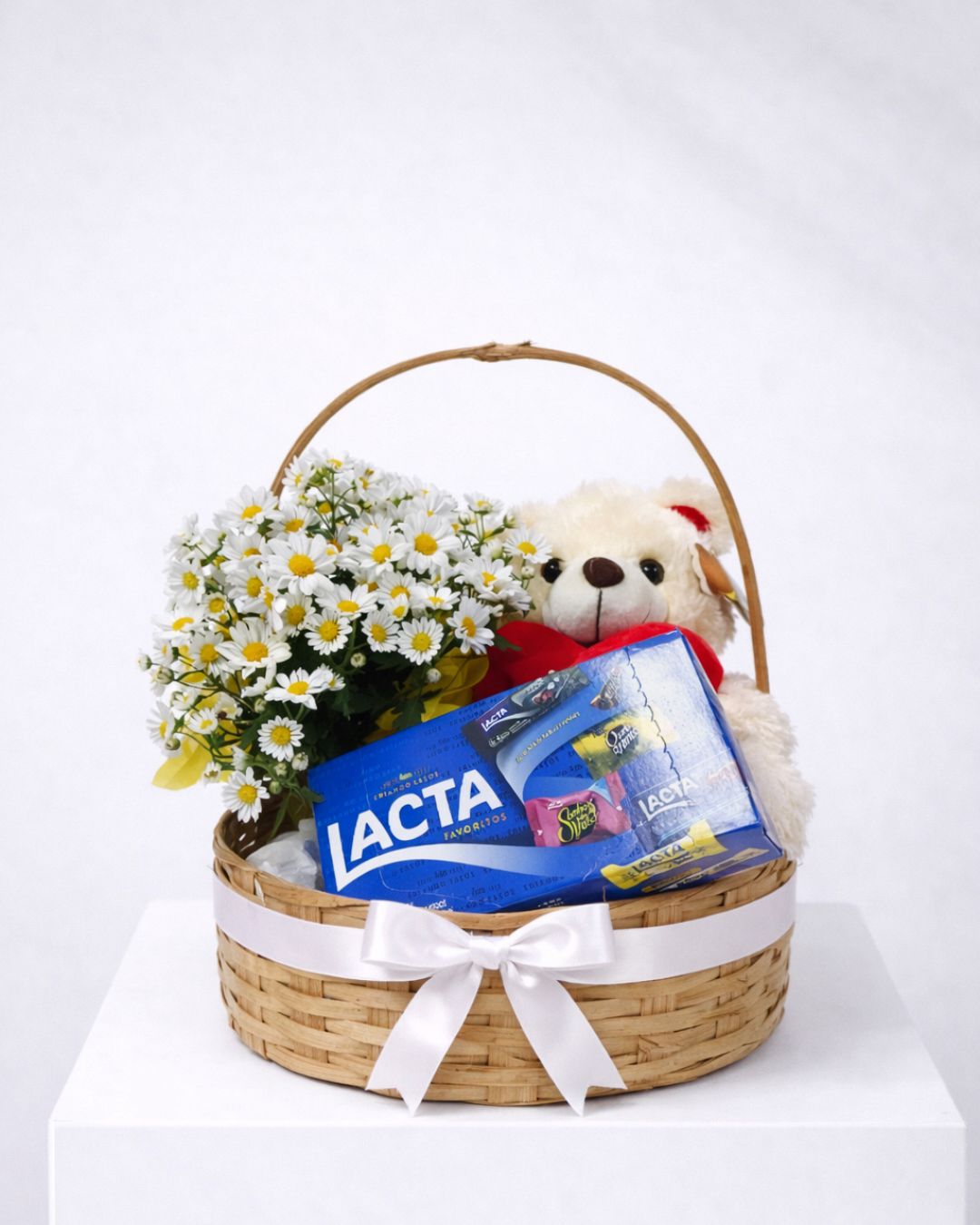 A Cesta Doçura Delicada une flores delicadas com chocolate clássico e pelúcia, criando um presente equilibrado entre carinho e suavidade. Ideal para surpreender de forma doce e elegante em aniversários, pedidos de desculpas, agradecimentos ou gestos inesperados.