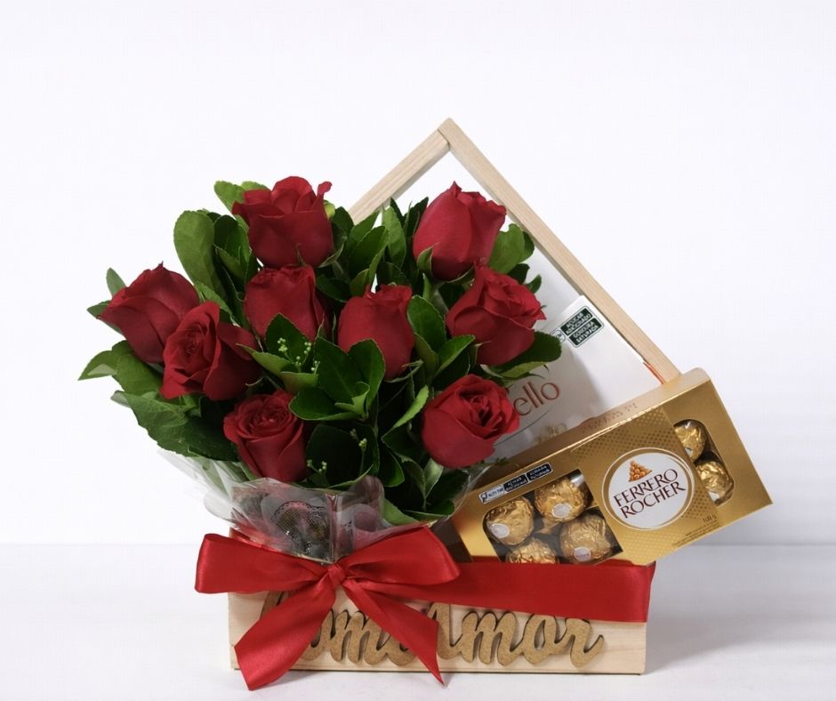 Um combo elegante e atemporal, perfeito para expressar amor de forma sofisticada. As rosas vermelhas trazem intensidade e romantismo, combinadas com chocolates Ferrero Rocher para um presente marcante e cheio de carinho.