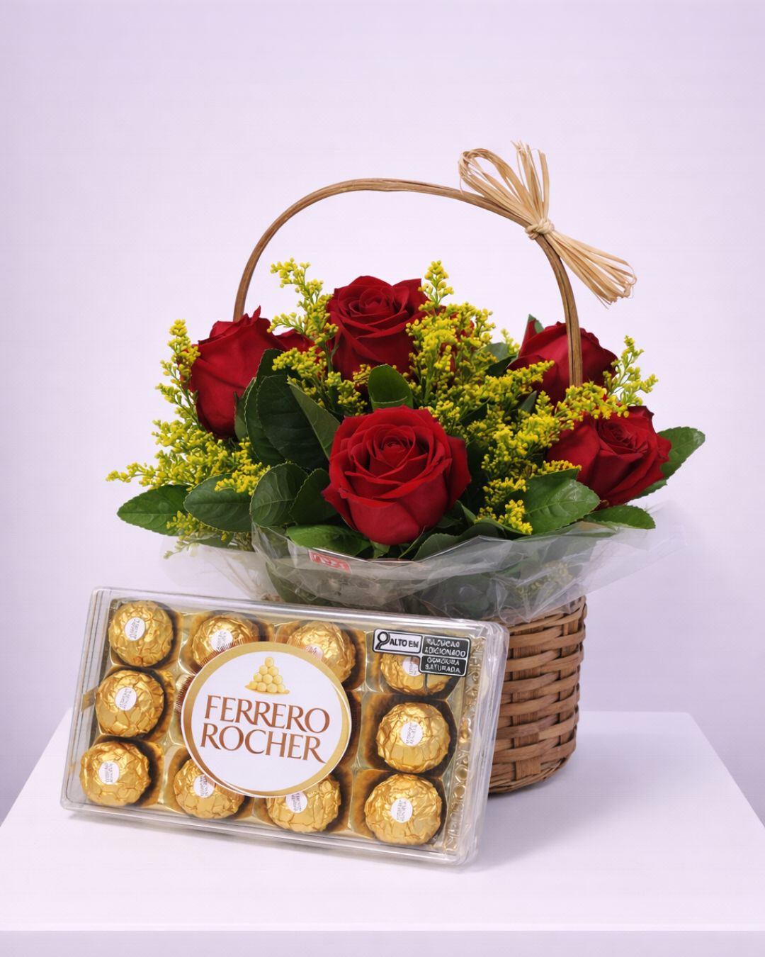 Um presente clássico e atemporal, criado para expressar amor, admiração e elegância. A Cesta Rosas Eternas reúne rosas vermelhas cuidadosamente selecionadas, símbolo do amor intenso, harmonizadas com folhagens delicadas e flores de acabamento que valorizam ainda mais o arranjo. Para completar, o inconfundível chocolate Ferrero Rocher adiciona um toque de sofisticação e indulgência.
