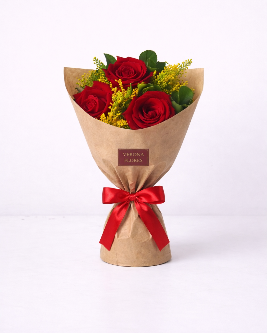 Um buquê intenso e elegante, criado para transmitir amor profundo, admiração e romantismo. As rosas vermelhas ganham destaque entre folhagens verdes e delicados toques amarelos, formando uma composição harmoniosa e cheia de significado. Ideal para surpreender em datas especiais ou declarar sentimentos de forma clássica e atemporal.